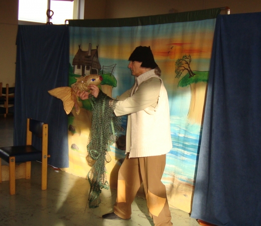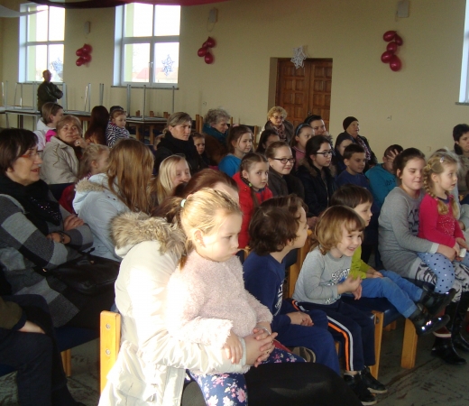 Dnia 04.02.2016.w sali WDK w Bielicach podczas ferii zimowych z inicjatywy filii bibliotecznej i świetlicy wiejskiej odbyło się przedstawienie teatralne ART-RE z Krakowa.