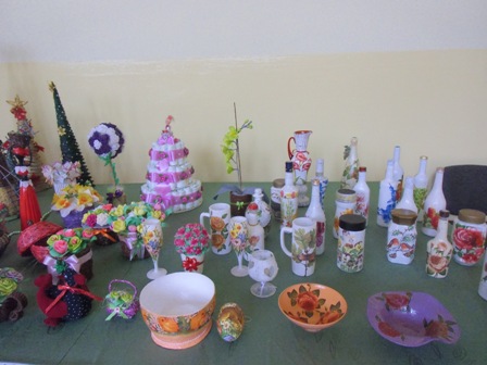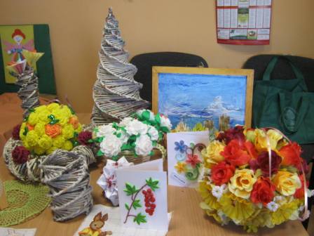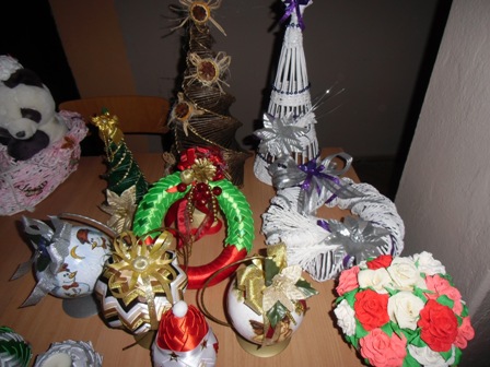 Dodatkową atrakcją wieczorku była wystawka prac, wykonanych na warsztatach z rękodzieła , prowadzonych przez grupę „Aktywni z pasją” działającą przy naszej bibliotece.