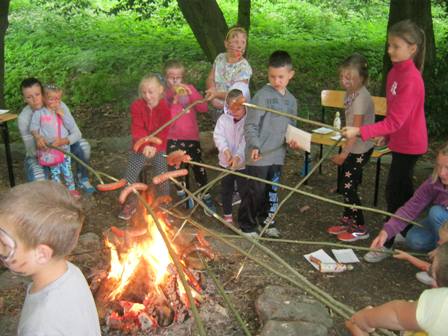 - Wspólne pieczenie kiełbasek na ognisku