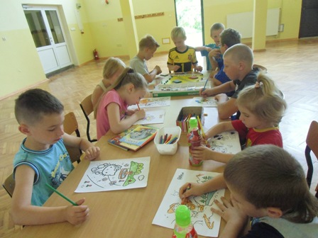 Wakacje minęły wesoło i bezpiecznie. Dzieci chętnie brały udział w zabawach i konkursach. W lipcu mieliśmy dzień pod hasłem "Wakacyjne zabawy - wesołe i bezpieczne", na który zaprosiliśmy policjanta, przyjechała Pani policjantka, która opowiedziała o bezpieczeństwie na wakacjach, dzieci wzięły udział w grach, zabawach i konkursach na temat bezpiecznych zabaw. W sierpniu byliśmy na wycieczce w Opolu - rejs statkiem po Odrze i przejazd po mieście londyńskim autobusem. Wycieczka bardzo się udała, wszyscy świetnie się bawili. Na pożegnanie wakacji przygotowaliśmy gry i zabawy, wręczenie nagród i dyplomów oraz pieczenie kiełbasek na grillu.